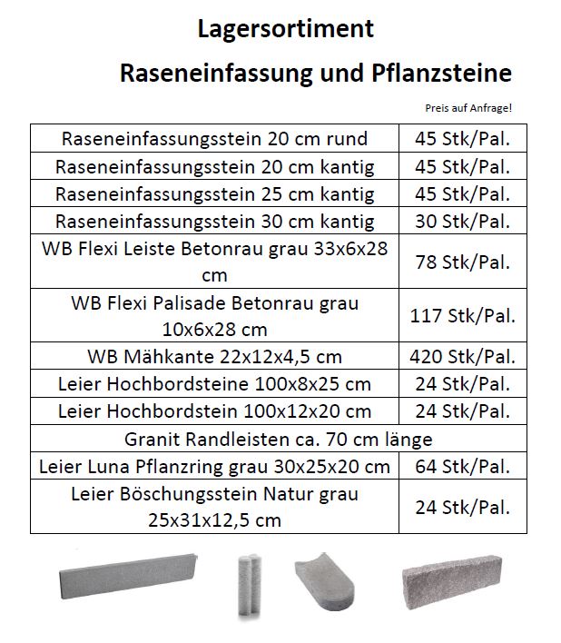 Raseneinfassungen, Mähkanten aus Beton und Granit